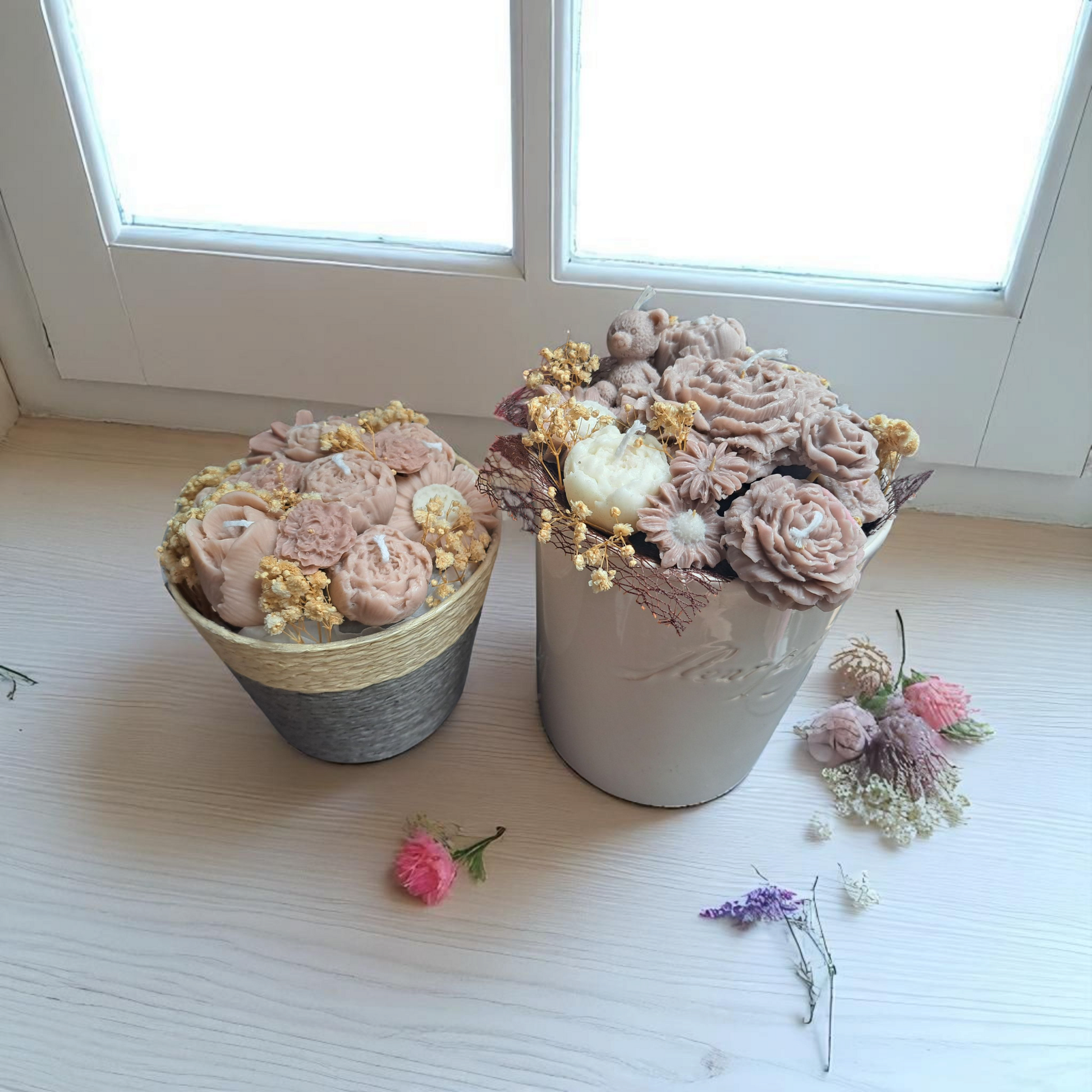 ๐ธ Wax Boeketjes met Kaarsjes & Waxmelts โ Beige/Bruin Tinten