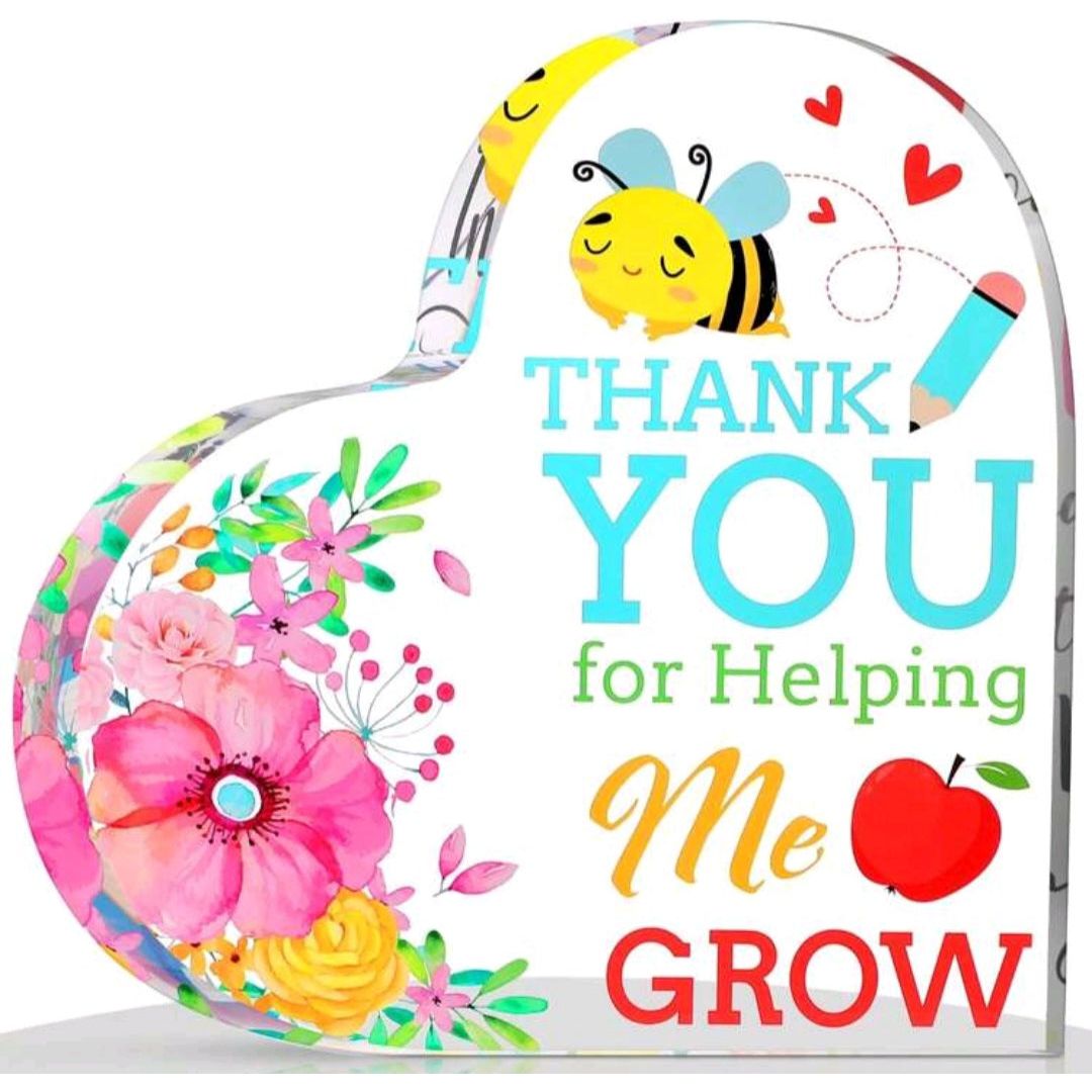 💖 Een transparant hartje met een vrolijke bedanktekst – een blijvende herinnering aan een bijzonder schooljaar