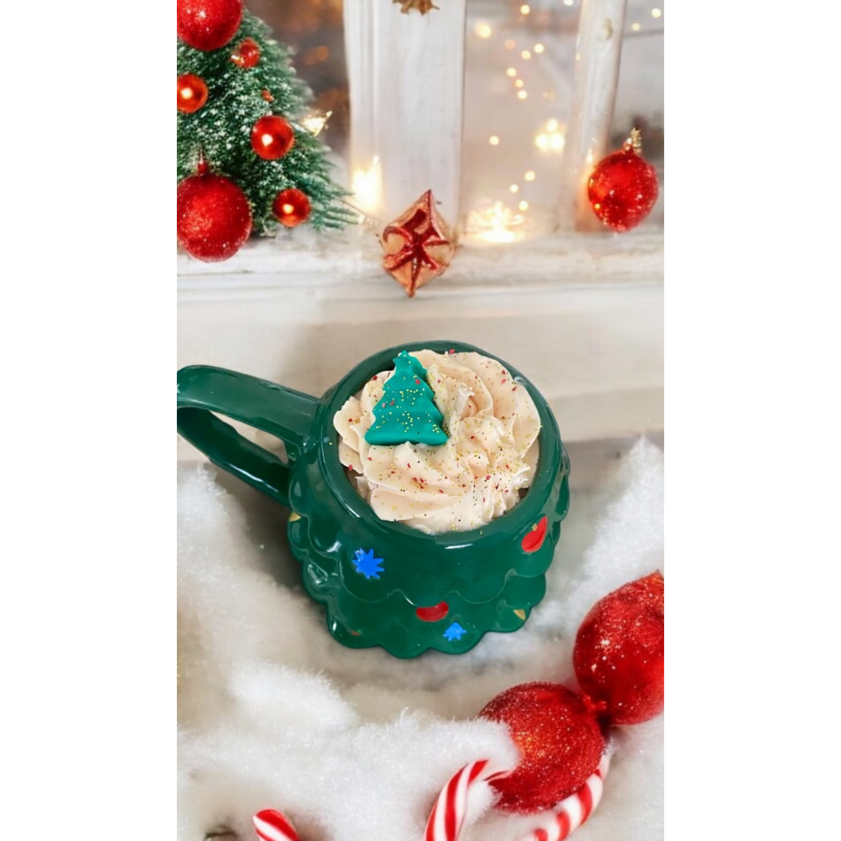 Ontdek onze grote kerstboom mok met de geur van witte nougat, gepresenteerd in een prachtige mok in de vorm van een kerstboom. Dit unieke product combineert de elegantie van een handgemaakte kaars en de warme sfeer van de feestdagen, voor een cadeau dat de zintuigen zal prikkelen en elk huis een feestelijk tintje zal geven. Steek de kaars aan en laat je betoveren door de zachte en zoete geur van witte noga, ideaal om een gezellige en geruststellende sfeer te creëren. Zodra de kaars op is, wordt de kerstboommok een schattig herbruikbaar accessoire, perfect om te genieten van je warme dranken of om je seizoensdecoratie compleet te maken. Ideaal cadeau voor de feestdagen of om jezelf te verwennen, deze witte nougat kaars is de essentie van een gastronomische en verfijnde kerst.