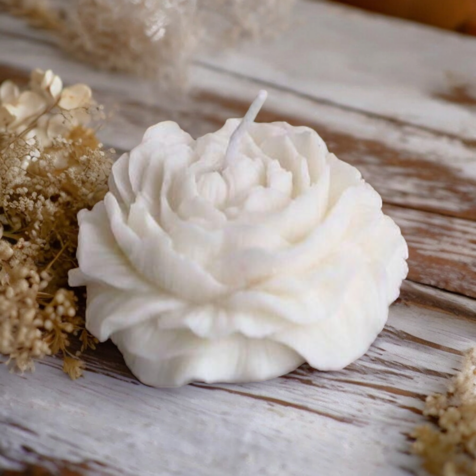 Laat je betoveren door onze handgemaakte pioenvormige kaars, een ware parel in ons assortiment. Zoals al onze kaarsen, is de pioenroos werkzame van pure koolzaadwas, met een zorgvuldig gekozen katoenen lont. Dit betekent dat onze kaars niet alleen een lust voor het oog is, maar ook: