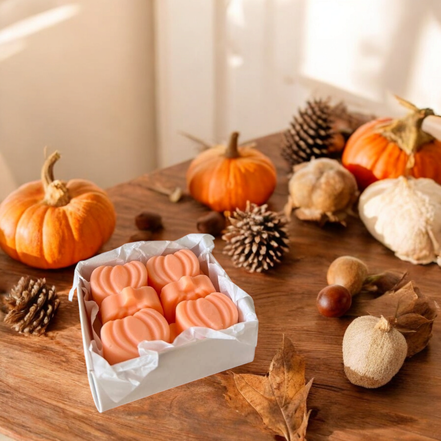 Herfstmagie ontvouwt zich perfect in je huis! Onze handgemaakte, glanzende oranje waxmelts in pompoenvorm zullen zowel je ogen als je ziel verrukken.