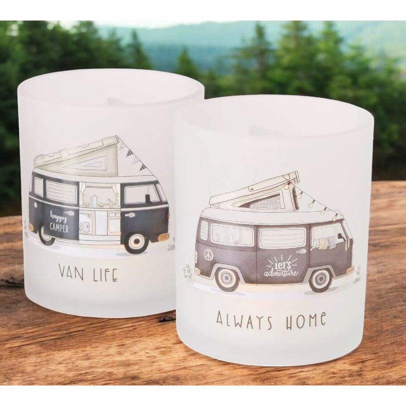 Voeg een vleugje avontuur toe aan je interieur met de Theelichthouder Glas 2-delig Camper! Deze set van twee glazen theelichthouders is versierd met een leuke camperprint, perfect voor iedereen die houdt van reizen en de vrije natuur. De vrolijke campers brengen direct een zomerse en avontuurlijke sfeer in je huis. Zet ze neer op de eettafel, een dressoir of je vensterbank en geniet van de warme gloed die de theelichtjes uitstralen. Deze theelichthouders zijn niet alleen ideaal voor het creëren van een gezellige sfeer, maar ook een geweldig cadeau voor camperliefhebbers! 🚐🕯️✨