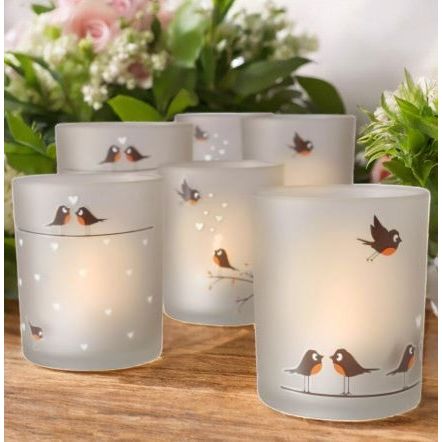 - Lief Design: Twee glazen theelichthouders met schattige vogelmotieven, perfect voor een speelse en natuurlijke uitstraling.