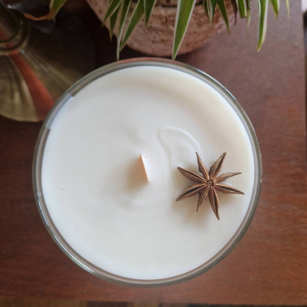 De kaars is ontworpen om te lijken op een citrusmartini met echte steranijs als garnering.