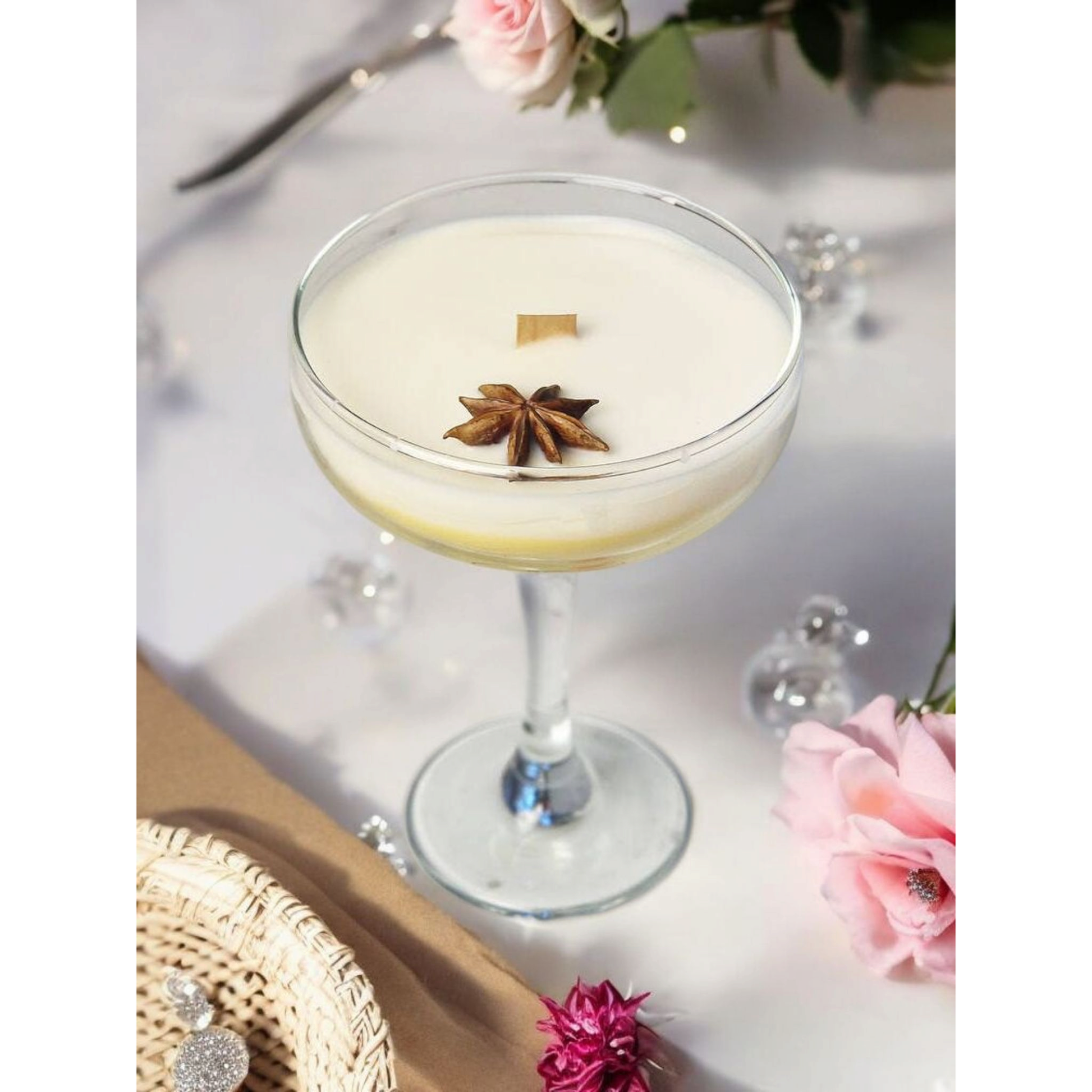 Een handgegoten sojakaars in een prachtig cocktailglas, met citrusaroma, is perfect voor een oppepper na een kater van een verjaardagsfeestje.